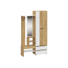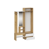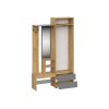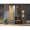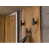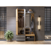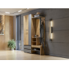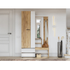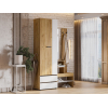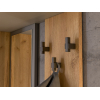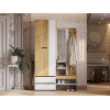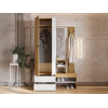 Шкаф с поперечной штангой и выдвижными ящиками подойдет для хранения сезонных вещей и аксессуаров. Открытая вешалка обеспечивает место для сумок и верхней одежды, а ниши внизу — для нескольких пар обуви. Гармоничное сочетание матовых фасадов и природных текстур актуально для разных стилей интерьера.